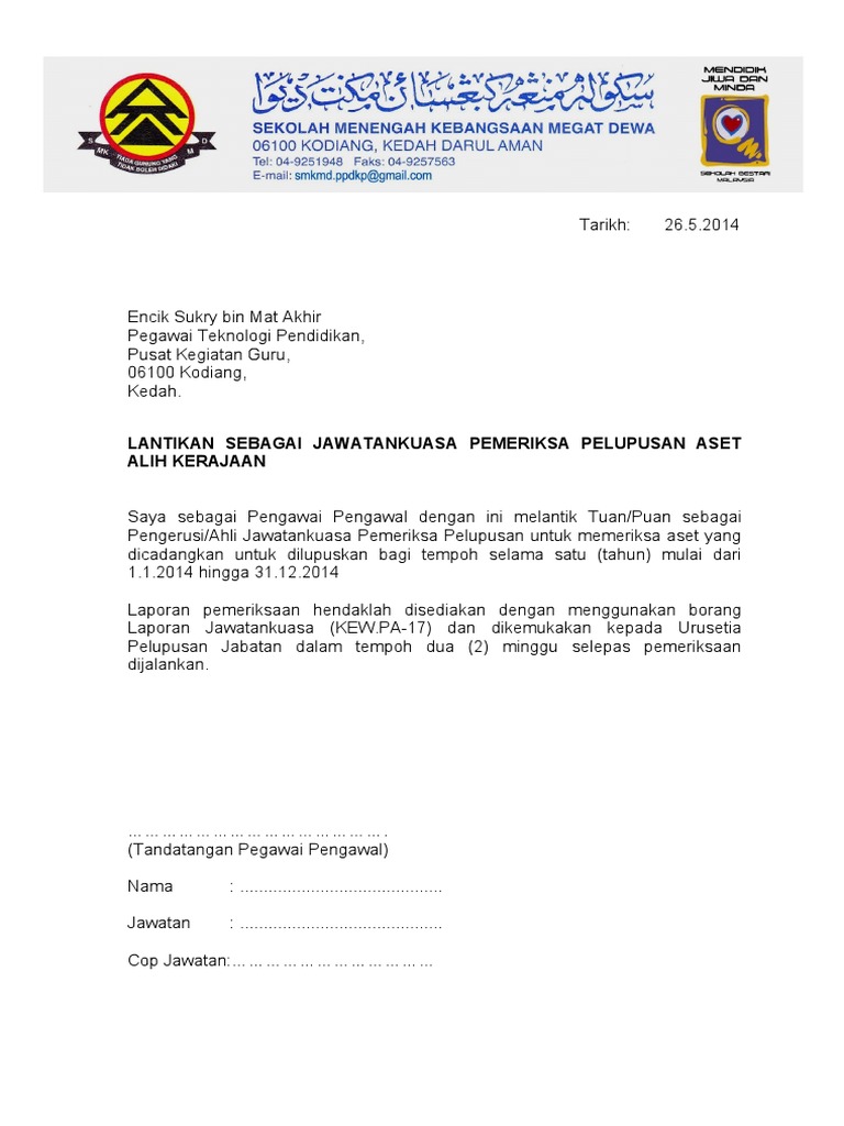Contoh Surat Pelantikan Jawatan Dalam Bahasa Inggris